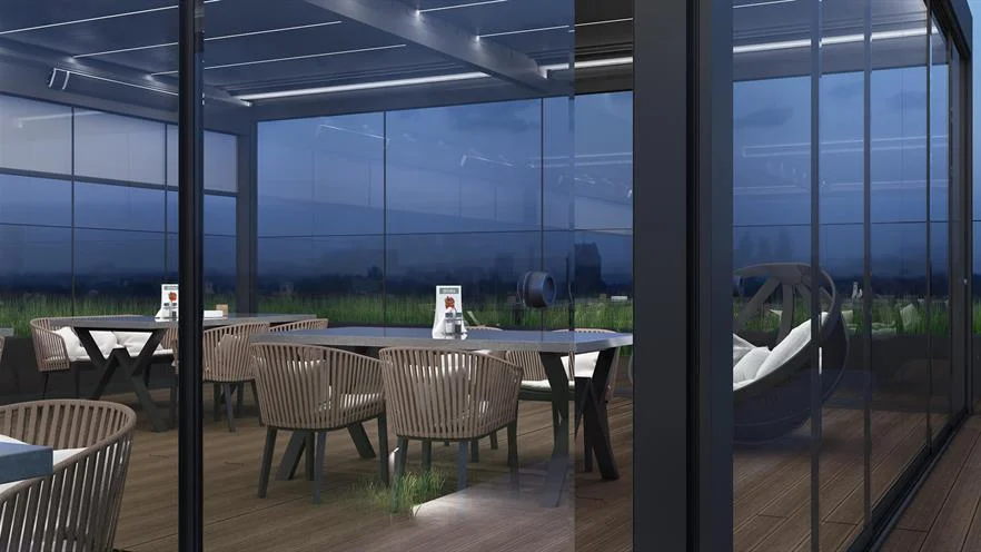 - Ελεγχόμενες συνθήκες λόγω της υιοθέτησης της βιοκλιματικής λογικής και της ενσωμάτωσης επιπλέον στοιχείων, όπως συρόμενα συστήματα υαλοπινάκων και παντζουριών, κάθετα ρολά σκίασης (ZIP), φωτισμός LED, κ.α.